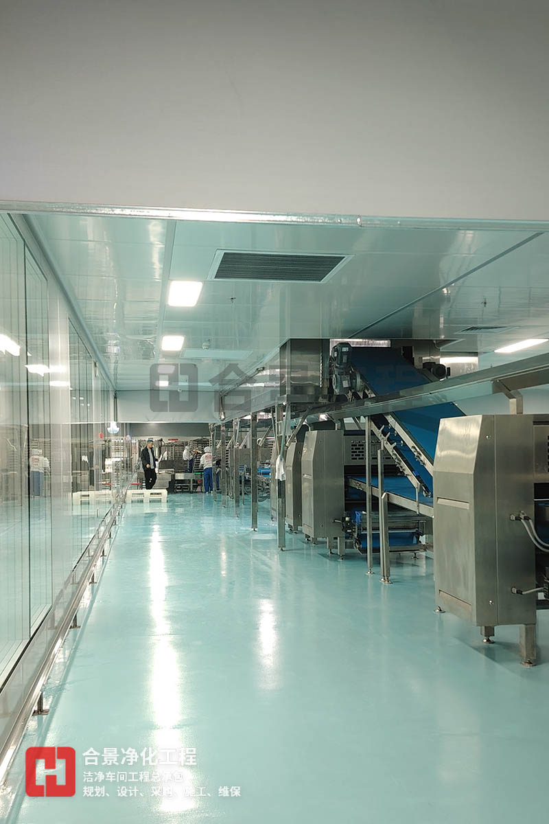 根據(jù)生產(chǎn)工藝特性,將食品廠凈化車間劃分為不同潔凈區(qū)域(如30萬級、10萬級、萬級)。通過壓差梯度實現(xiàn)氣流定向流動:清潔區(qū)與非清潔區(qū)保持≥10Pa正壓差;高風險操作區(qū)形成相對正壓核心區(qū);物料傳遞口設置雙扉連鎖氣閘裝置;人員通道采用風淋室與緩沖間雙重隔離。